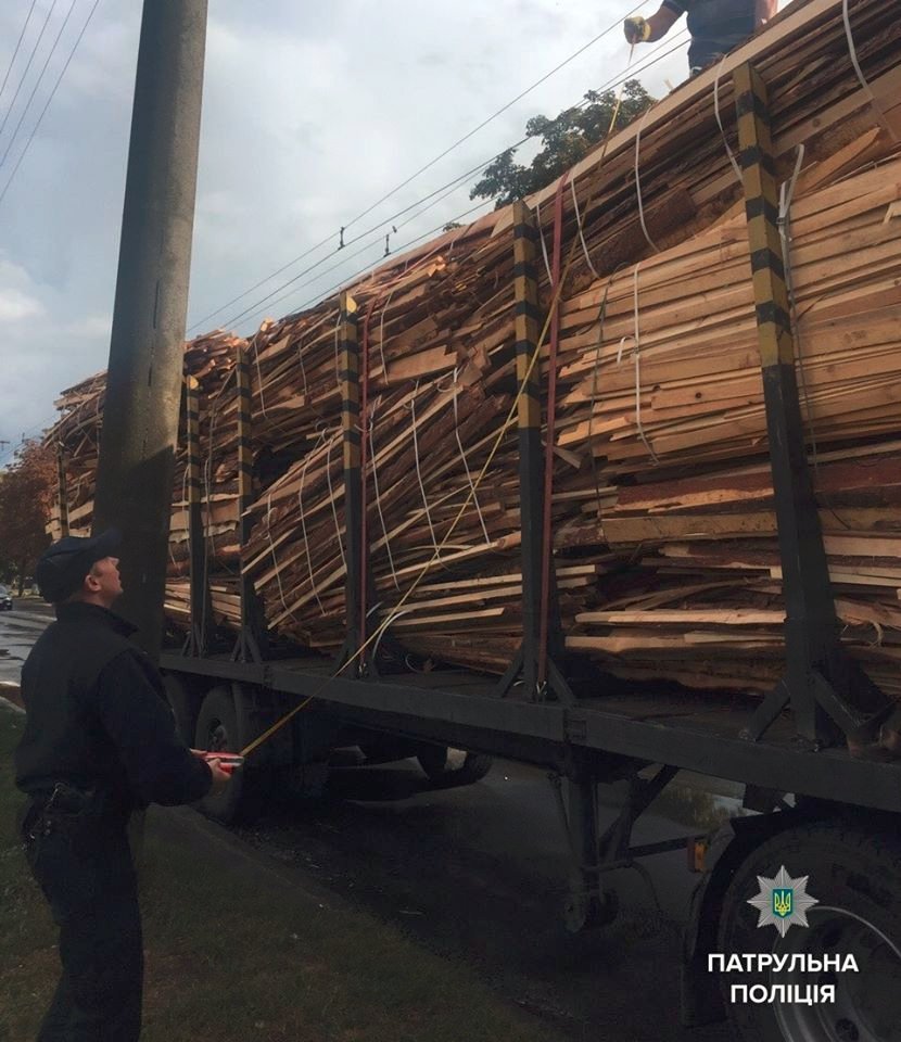 Вчора, 22 вересня, патрульні зупинили вантажівку, яка рухалась, перехиляючись то на один, то на інший бік. Ймовірно, була перевантажена деревиною.