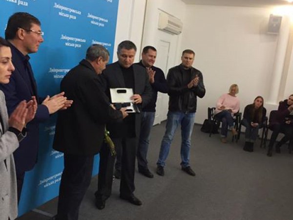 Міністр внутрішніх справ Арсен Аваков нагородив пістолетом "Форт-17" водія маршрутного таксі Валерія Тімоніна, який намагався затримати вбивцю двох патрульних у Дніпрі Олександра Пугачова.