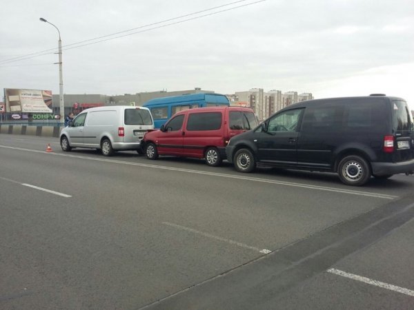 Очевидно, найперший різко пригальмував, а ті, які їхали позаду, не встигли зреагувати і врізалися по черзі один в одного. Транспорт отримав механічні пошкодження, ніхто не постраждав.