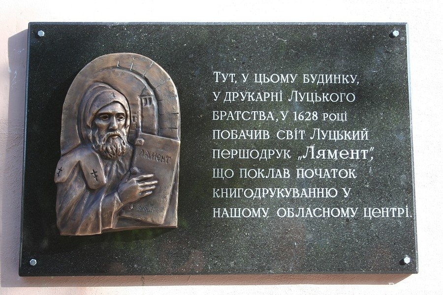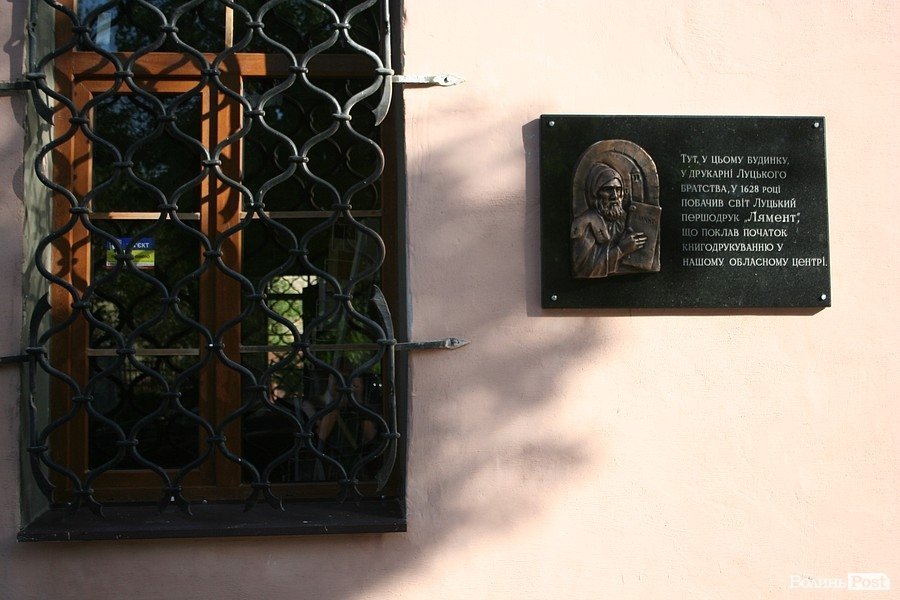 «Тут у цьому будинку у брукарні Луцького братства у 1628 році побачив світ луцький першобрук «Лямент», що поклав початок книгодрукуванню у нашому обласному центрі», - йдеться у тексті меморіальної дошки.