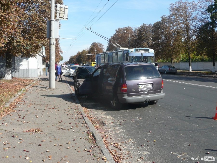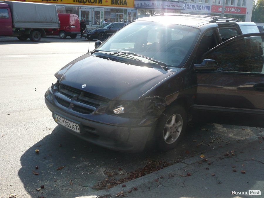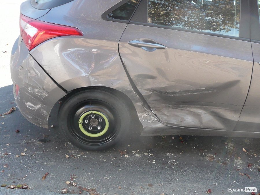 Два автомобіля - "Хюндай" і "Додж" - рухалися зі сторони моста на вулиці Рівненській в напрямку готелю "Лучеськ". Внаслідок удару автомобіль "Хюндай" розвернуло через дві суцільні смуги руху та відкинуло аж до магазину, що на зупинці громадського транспорту.