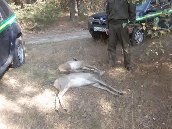 Троє чоловіків полювали в угіддях УТМР. На жаль, уже встигли підстрелити козулю з козеням. Поблизу канави, від якої йшли чоловіки, лісоохоронці побачили дорослу тварину з перерізаним горлом. Поруч лежало козеня.