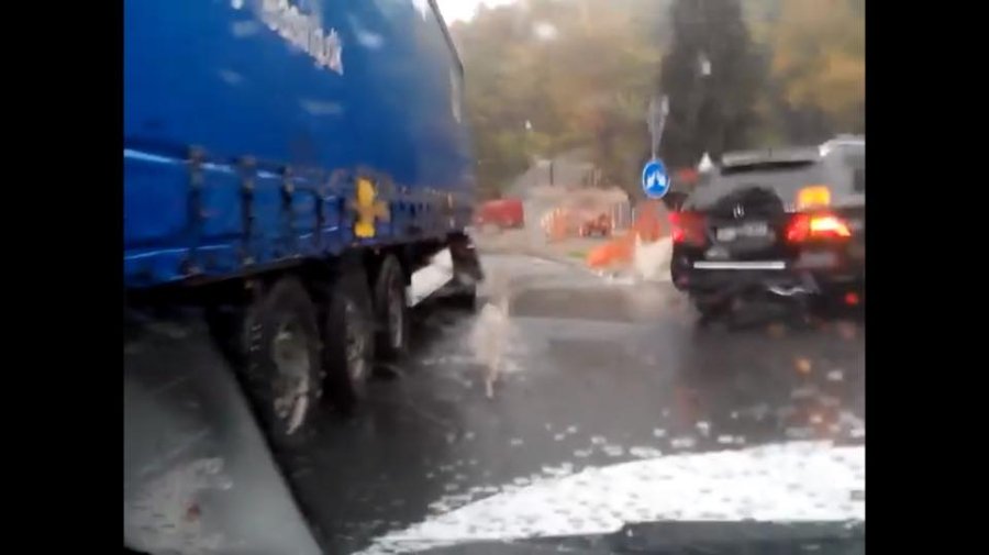 У Львові на відремонтованій вулиці Стуса провалилася під асфальт вантажівка.