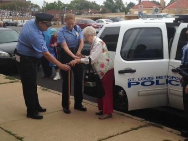 У штаті Міссурі (США) 102-річна Еді Сіммс склала список бажань, одним з пунктів в якому було проїхатися заарештованою на задньому сидінні поліцейського автомобіля, в наручниках.
