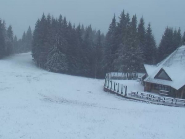 Так, на першому відео з веб-камери видно, що на курорті мете сильна завірюха.