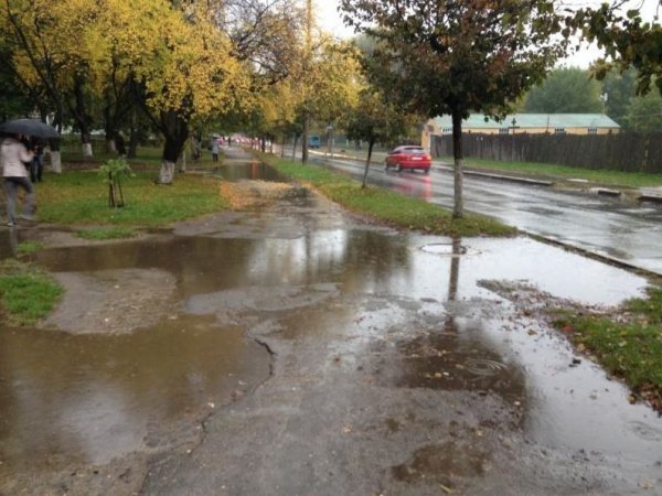 Там цілу вулицю треба терміново зробити калюжі по коліна можна плавати діти поки до йдуть до школи цілі мокрі будляска зробіть цю вулицю европейського зразка