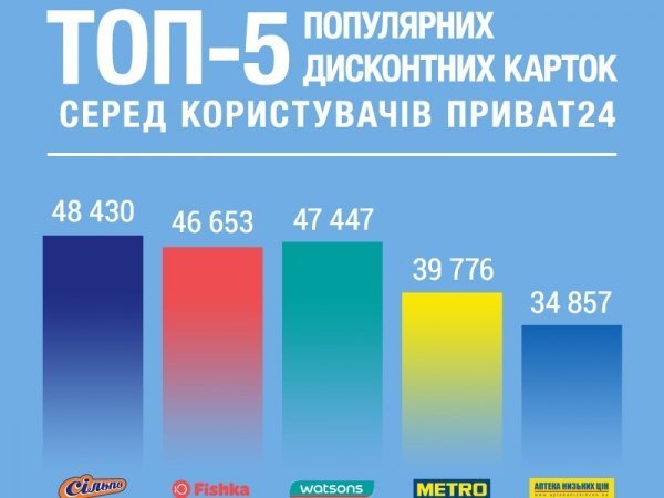Найактивніше переводять свої картки в смартфони клієнти продуктових мереж, автозаправок і мереж товарів для краси. У першій п’ятірці найпопулярніших дисконтних карток серед користувачів Приват24 виявилися картки «Сільпо», Fishka, Watsons, METRO та «Аптеки низьких цін». Серед покупців електроніки та побутової техніки найбільше оцифровано карток Comfy та «Фокстрот», на ринку спортивних товарів лідирують картки «Спортмастер», а серед мереж одягу та взуття – COLIN'S та Intertop.