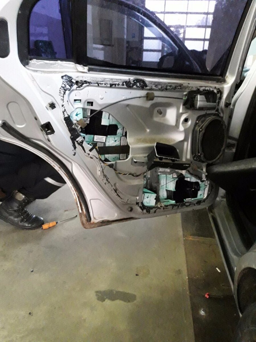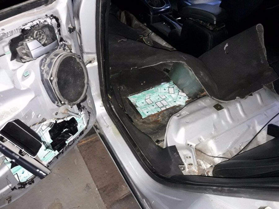 Прикордонний наряд під час перевірки документів виявив ознаки підробки в дорученні на право користування транспортним засобом. Крім цього, під час поглибленого огляду сумнівної автівки охоронці кордону виявили схованки, облаштовані у передньому та задньому бамперах, в підлозі та в усіх 4-х дверцятах автомобіля. В них спритний правопорушник приховав 3660 пачок цигарок «NZ» та «Квін Ментол» без акцизних марок України.