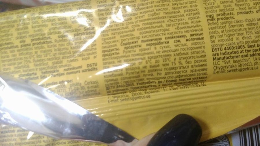 "Цей рулет, термін придатності якого закінчився ще в серпні, зараз лежить на полицях продажу у маркеті "Наш Край Експрес" в Нововолинську (біля міської друкарні).