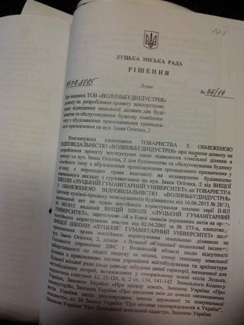 Саме на ці колізії почали «бити» депутати, зокрема, той же Павло Данильчук. Він навіть скерував заяву на адресу Луцького міського відділу поліції, в якій звинувачує міського голову Миколу Романюка та колишнього секретаря міської ради Сергія Григоренка у фальшуванні документів.