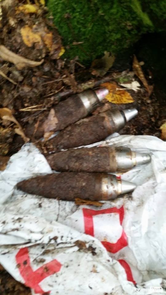 «Грибів немає)) але... Схрон боєприпасів знаходився 20 метрів від траси Рівне-Луцьк за 1.5 км від Цуманського блокпосту поліції. Хто і навіщо прикопав таке в лісі? І ще скільки подібних схованок є по Україні?.. Думайте самі... А може доблесна поліція дасть відповідь на це питання!? Дуже на це надіюсь!» - написав він.
