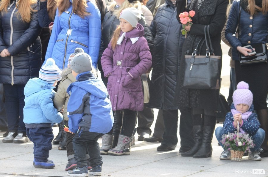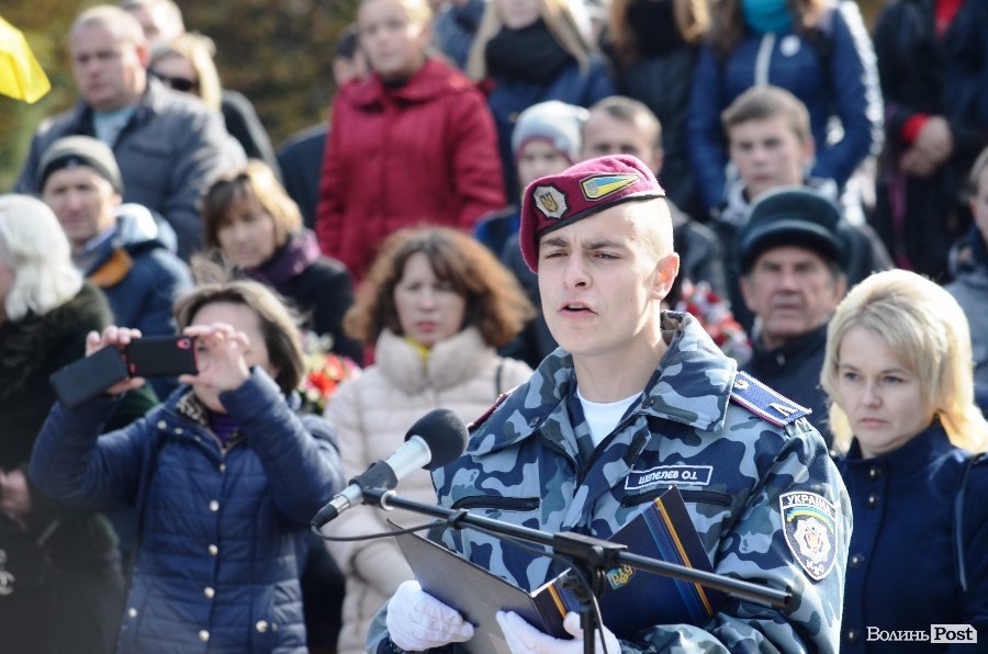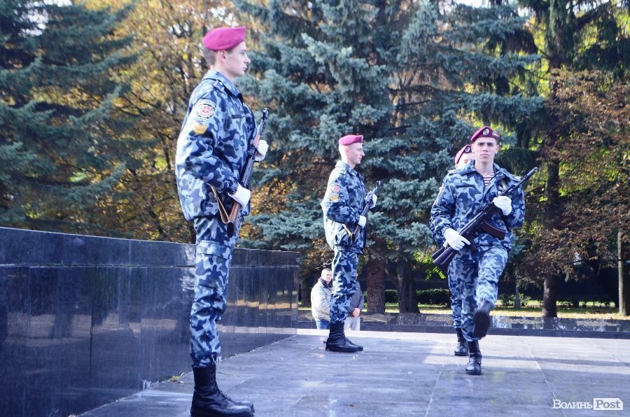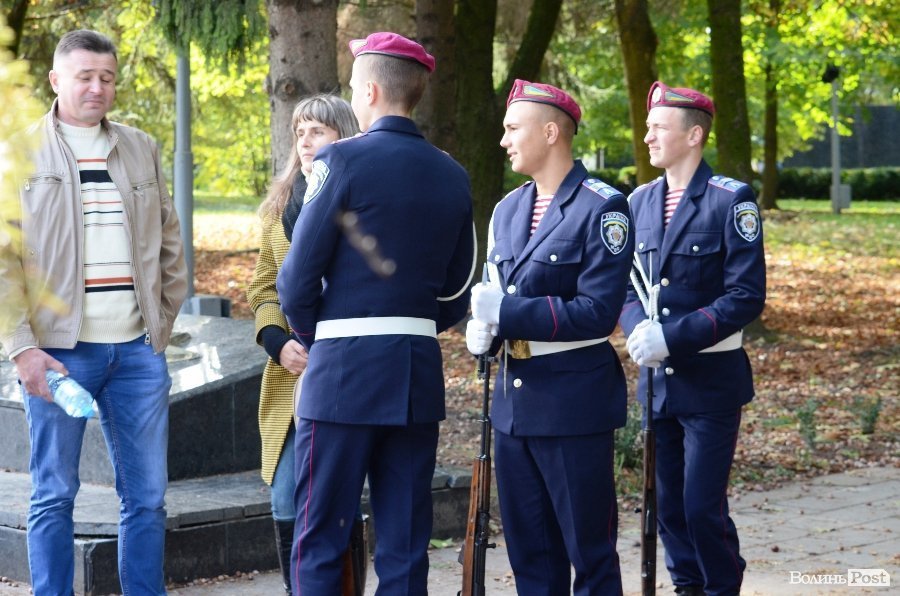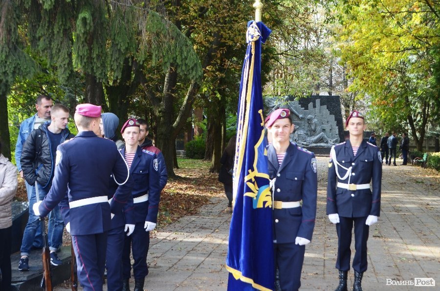 Нових ліцеїстів на Меморіалі Вічної Слави у Луцьку вітали директор Ліцею Анатолій Дудич, Луцький міський голова Микола Романюк і генерал третього рангу Петро Шпига.