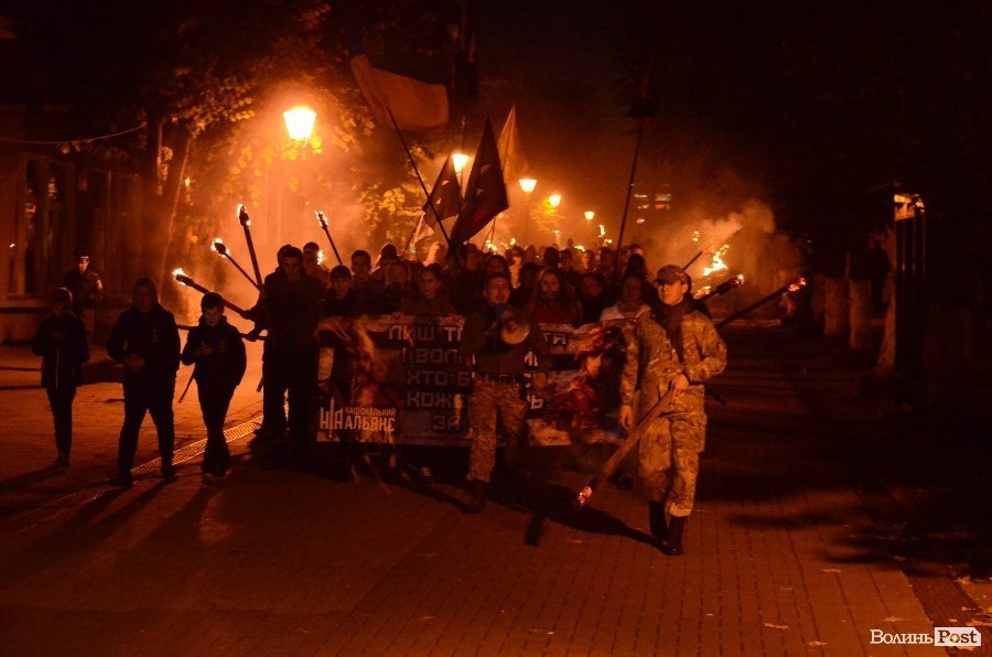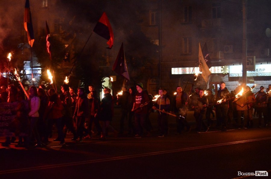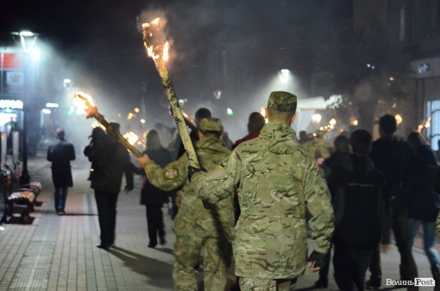 До дня захисника України, річниці створення УПА та свята Покрови вулицями Луцька пройшла вже традиційна смолоскипна хода.