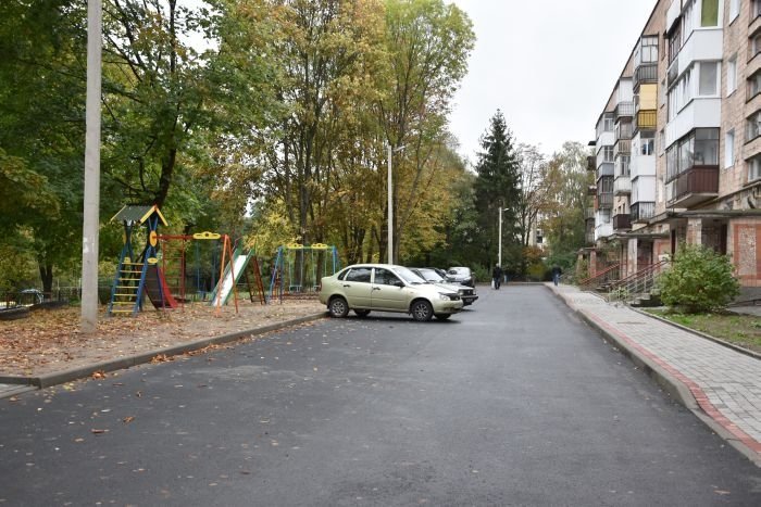капітальний ремонт прибудинкових територій: на бульварі Дружби народів, 13; вул. Бенделіані, 1 а, 3 а; Володимирській, 95, 95 а, 96, 97, 99; Гетьмана Мазепи, 49; Гордіюк, 4а, 8, 33, 33а, 35; Конякіна, 12, 12а, 12 б; Степана Бандери, 11, 13, 18, 20, 22; Писаревського, 9, 11; вул. Вавілова, 5; пр. Відродження, 18 — вул. Січова, 1; вул. Шевченка, 37, 37а; вул. Миру, 2, 4; вул. Кравчука, 2, 4; просп. Соборності, 10, 12, 14, 16; Волі, 22, 37, 39, 39а, 43, 45 ; вул. Словацького, 12; пр. Молоді, 1, Рівненська, 111.