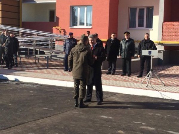 Президент України Петро Порошенко у селі Тарасівка на Київщині вручив 55 родинам нацгвардійців сертифікати на отримання житла.