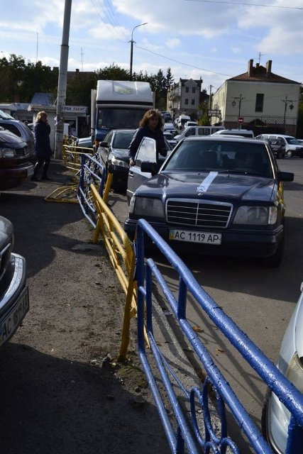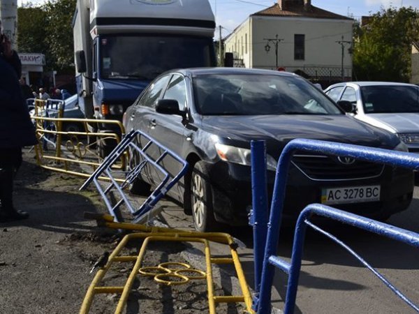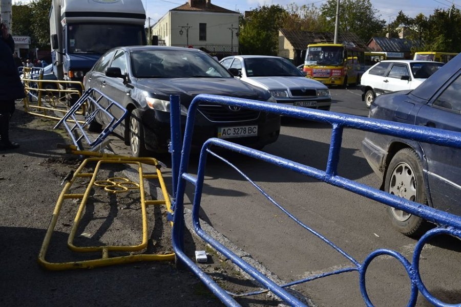 У Луцьку на парковці поблизу Центрального ринку на машину впав паркан.