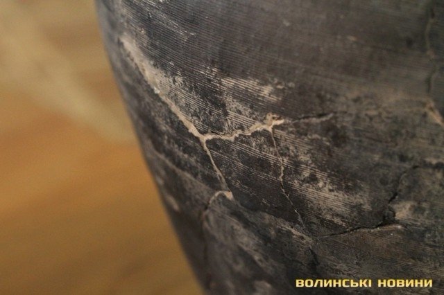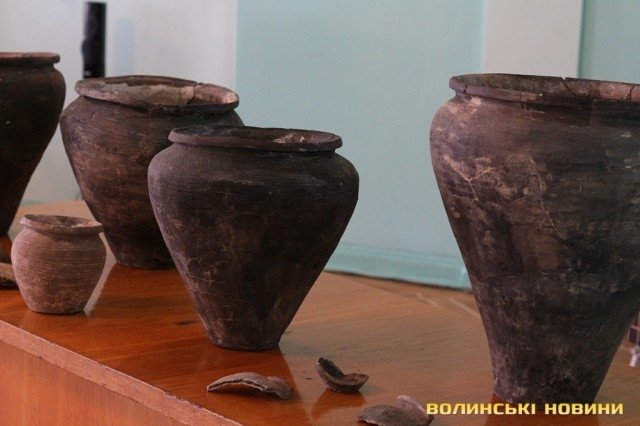 Також у тому ж похованні археологи знайшли 2 горщики. Причому, один з них типовий для Київської Русі, а другий - ні. Це радше за все, кажуть фахівці, баклага для зберігання і перевезення води подорожнім. На Волині таких горщиків не виготовляли.