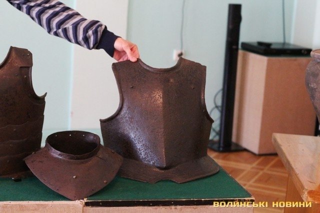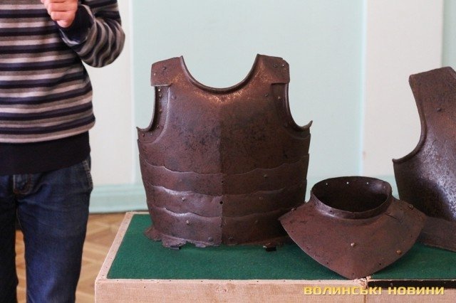 Молодший науковий працівник волинського краєзнавчого музею Тарас Верба, своєю чергою, представив ще низку експонатів. Зокрема, це - обладунки. Тривалий час ці речі зберігалися в музейних архівах, вони не обліковані і невідомо, як вони сюди потрапили. Ймовірно, хтось подарував їх ще в 30-х роках. І завдяки реставратору їх відновили.