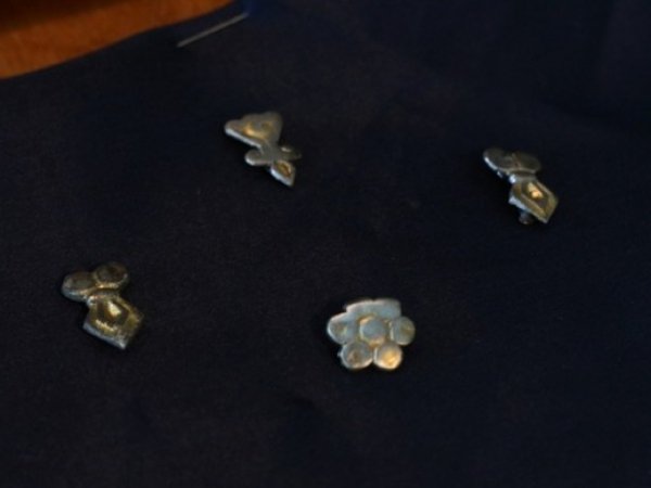 Крім того, є тут набір, ідентифікований як фрагменти підсумка, який кавалеристи носили на поясі. Ці предмети - елементи декору, виготовлені зі срібла з позолотою. Причому, майстер користувався вогневим золочінням: коли золото плавилося і розтікалося по виробу.