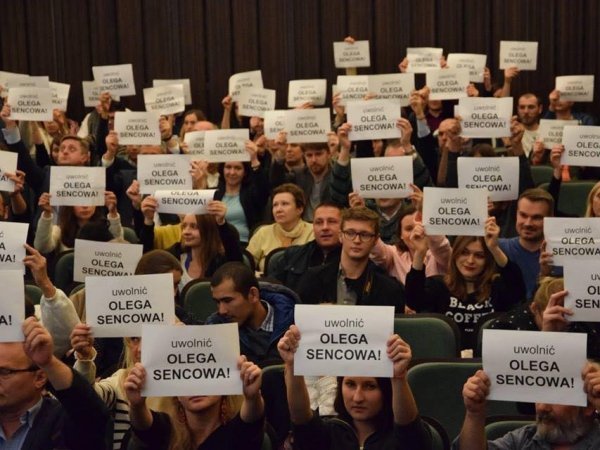 На фестивалі українського кіно у Варшаві (Польща) відбулася акція на підтримку українського кінорежисера Олега Сенцова, ув'язненого в Росії.