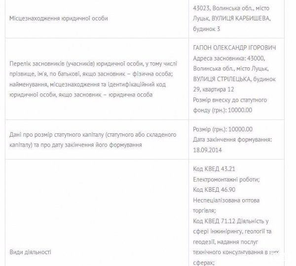За даними Єдиного державного реєстру юридичних осіб, фізичних осіб-підприємців та громадських формувань, статутний капітал фірми-переможця становить 10 тисяч гривень. Її засновником та керівником є Олександр Гапон.