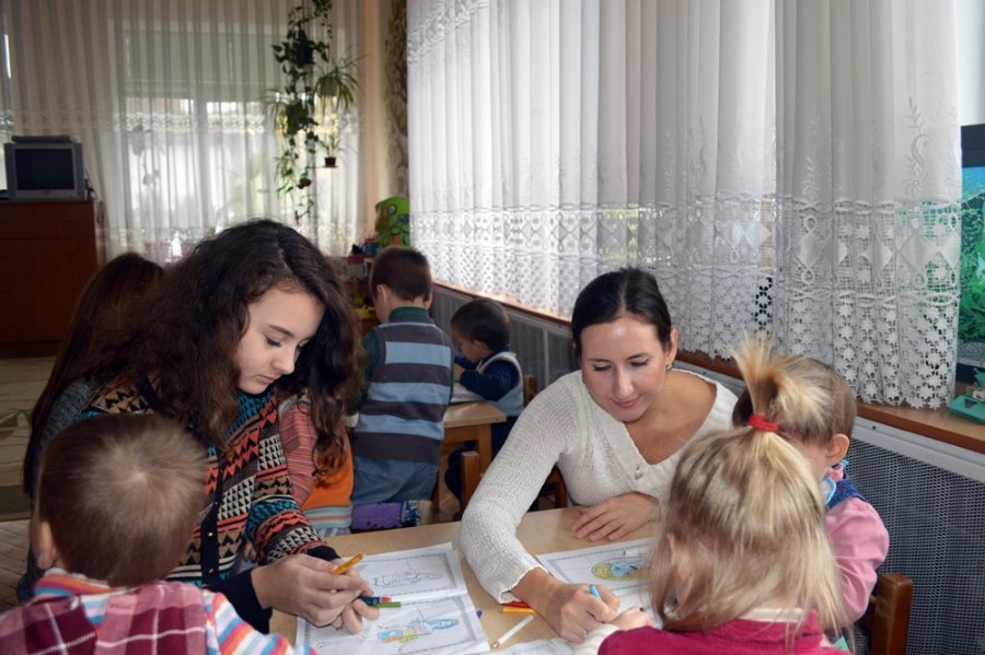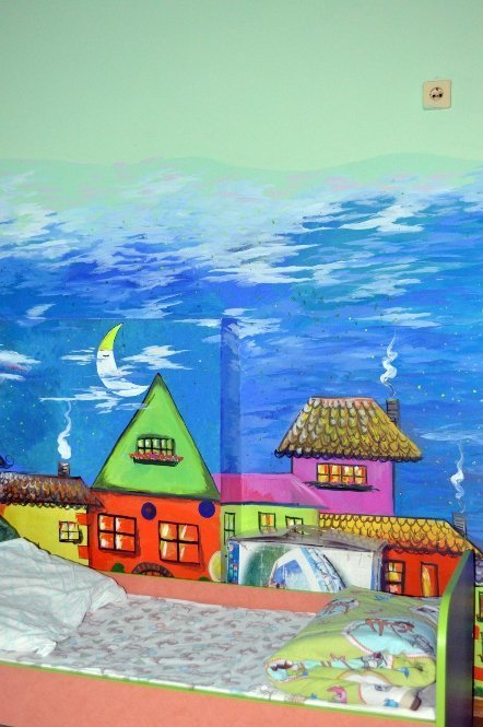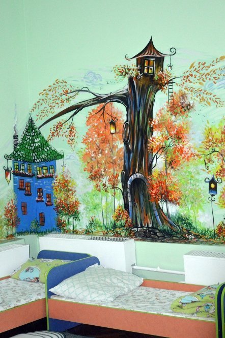Творчий настрій у притулку створювала художниця Алла Харчук. Вона провела арт-терапію для дітей: розмальовувала стіни дитячої кімнати. Варто відзначити, що художниця не вперше проводить арт-розпис стін Дитячого будинку дитини. Аби хоч трішки прикрасити сірі будні обділених увагою дітей, вона розмалювала актовий зал та створила казкову країну в спальних кімнатах маленьких діток.