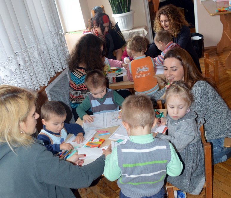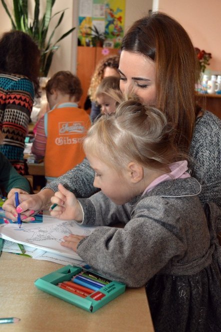 Розфарбувати життя малечі вдалося на проведеній творчій годині. Дорослі та діти разом розмальовували кольоровими олівцями казкових героїв, вчили кольори та спілкувалися.