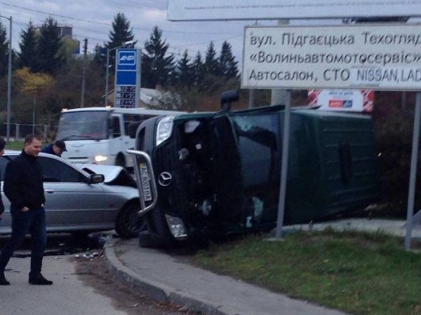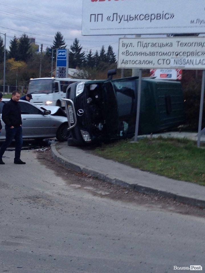 У Луцьку сталася аварія, під час якої мікроавтобус перекинувся на бік.