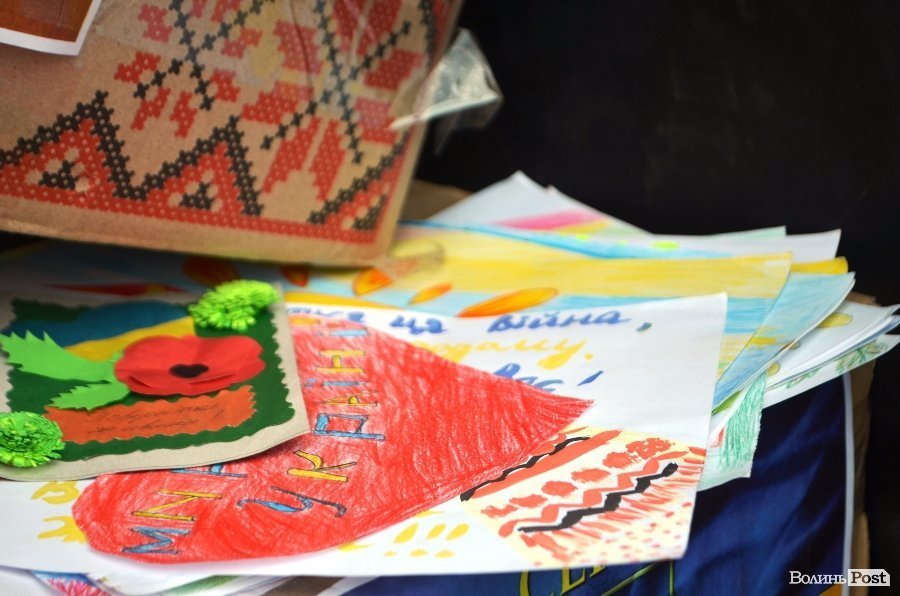 Перша за все, школярі передали багато малюнків та солодощів.