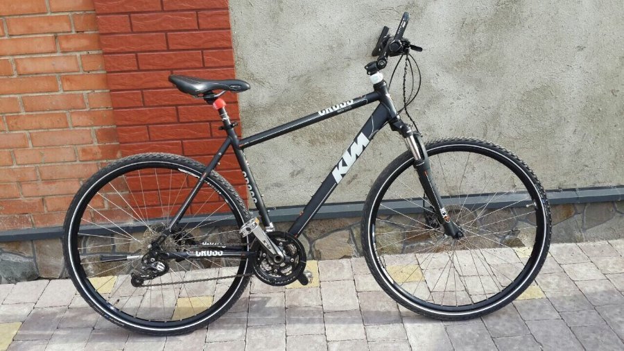 Велосипед марки КТМ чорного кольору.