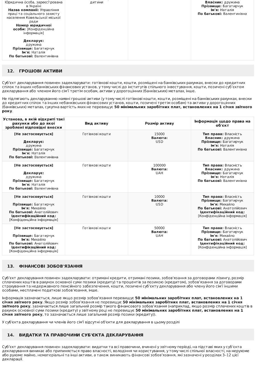 Михайло Багатирчук - 50 000 гривень та 10 000 доларів США;