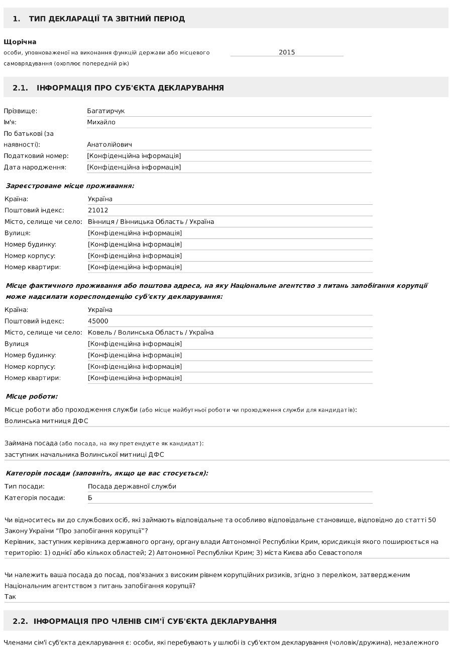 Е-декларація: «скромні» доходи заступника головного митника Волині Багатирчука