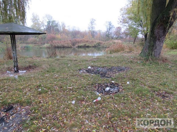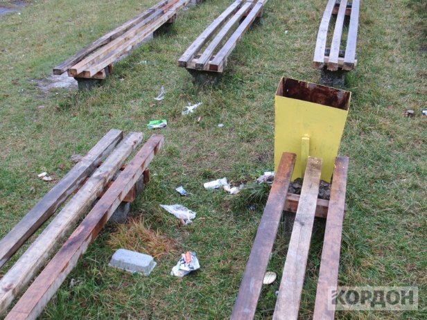 За стадіоном біля воріт теж можна побачити купу сміття, яка накопичується вже не один місяць. У парку біля стадіону також видно «сліди» відпочинку «шанувальників природи».