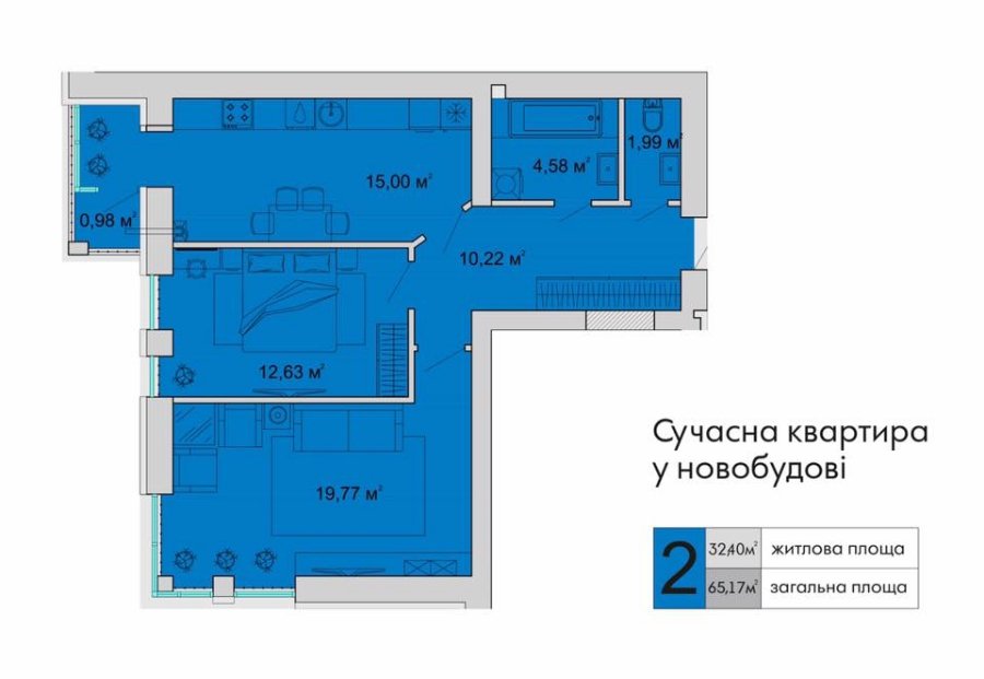 2) Двокімнатна квартира у ЖК «Супернова» Луцьку на вулиці Супутника, що в районі Львівської. Площа житла - 65, 17 квадратних метрів. Будинок розташований у мальовничому місці поблизу зеленої зони та ботанічного саду.