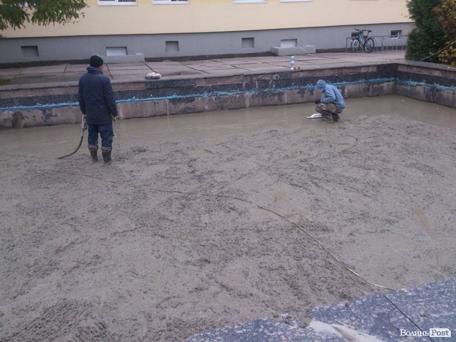 У чаші фонтану біля луцького Палацу учнівської молоді у Луцьку облаштовують спортивний майданчик.