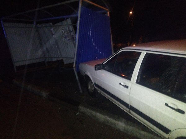 У результаті цього Volkswagen відкинуло на зупинку громадського транспорту.