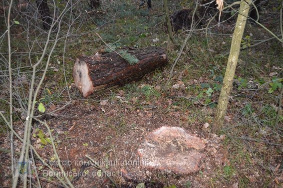 Як з’ясувалося, вирубали сосни двоє мешканців села Жиричі. Викрадене поліцейські вилучили та повернуть власнику.