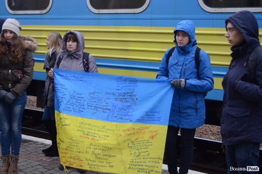 Волинська волонтерка Інна Голдованська, яка теж прийшла зустрічати потяг, розповіла, що у Луцьку на гостей чекає насичена програма - їм проведуть екскурсії містом, покажуть експозиції, присвячені Майдану та війні на Сході. Окрім того, планують багато розповісти й про діяльність ОУН-УПА на Волині.