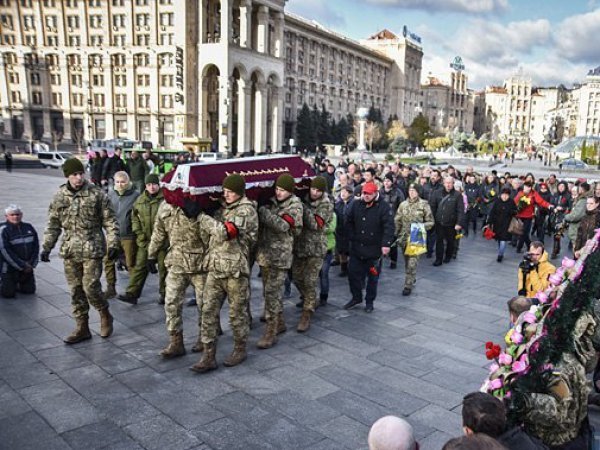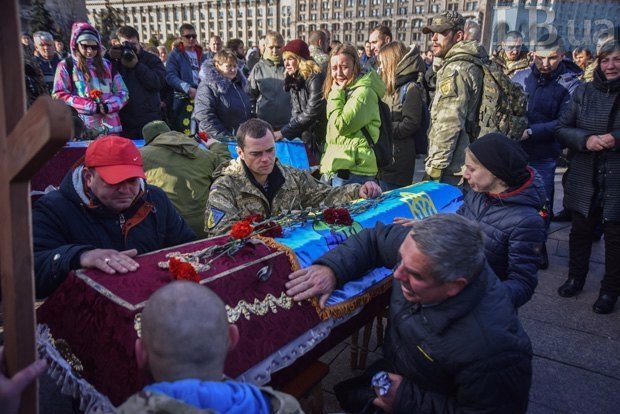 У Києві на Майдані Незалежності пройшла церемонія прощання із загиблими бійцями АТО Миколою Саюком (позивний "Француз") і Сергієм Кочетовим (позивний "Кіт").