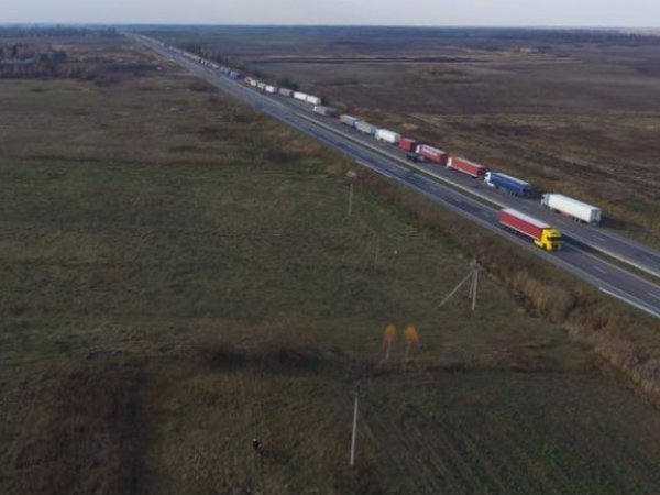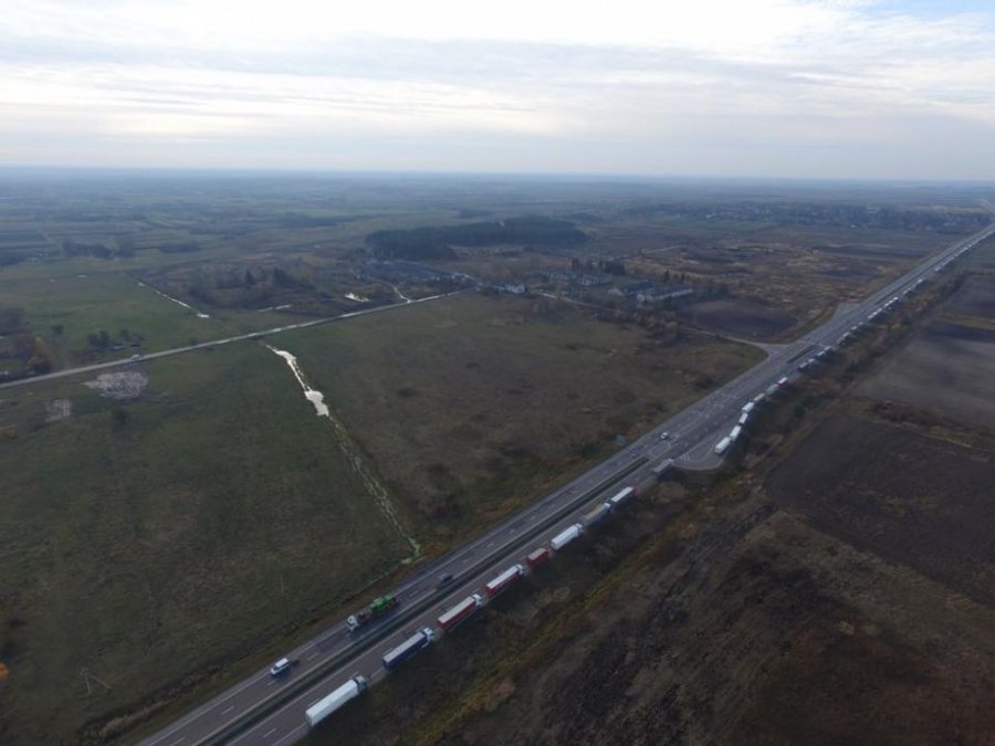 Багатокілометрова черга вантажівок на «Ягодині» з висоти пташиного польоту