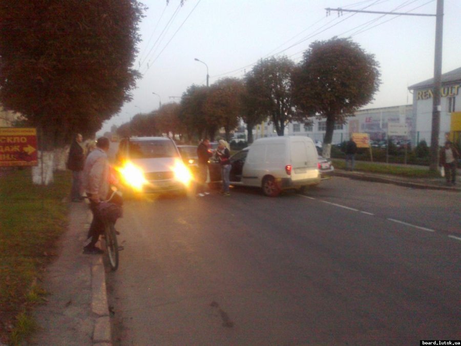 Користувач з ніком zzzvalentinxxx, автор фото цього ДТП, пише: «Навпроти 7 школи на виїзді з Дубнівської 16 пацан на Honda не уступив дорогу автомобілю VW CADDI, за кермом якого була жінка. Ніхто не постраждав, але у водійки помічено розбитий лоб. Також в салоні Фольца була пасажирка з дитиною, останню сильно налякали…