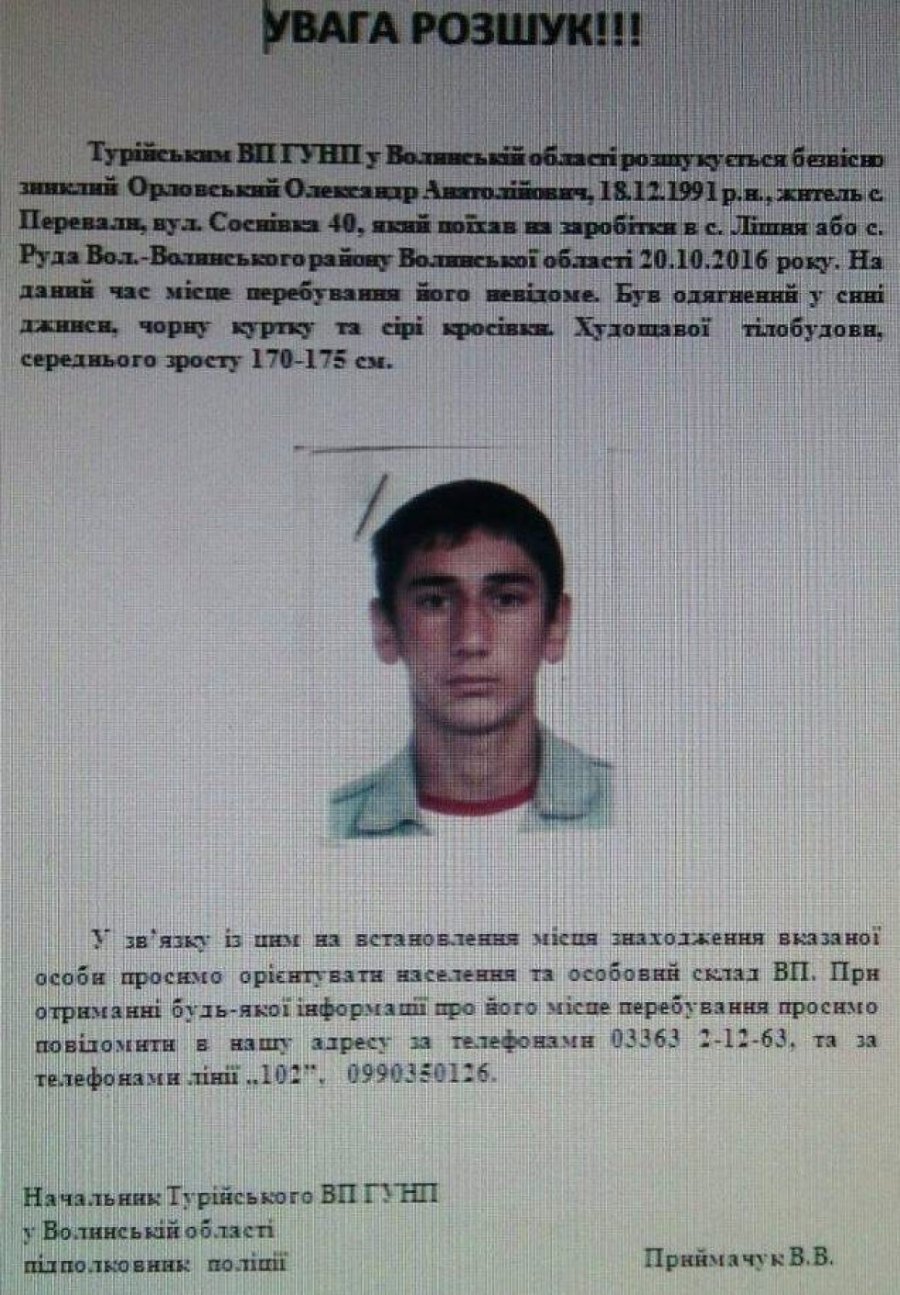 «Померлим виявився Олександр Орловський, 1991 року народження, житель села Перевали Турійськогорайону. Слідів насильницької смерті не виявлено. Після судово-медичної експертизи було встановлено, що чоловік помер від набряку головного мозку.
