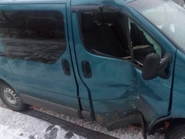 На світлинах видно, що мікроавтобус врізався у стовп, від чого той впав. Крім того автомобіль пошкоджений.