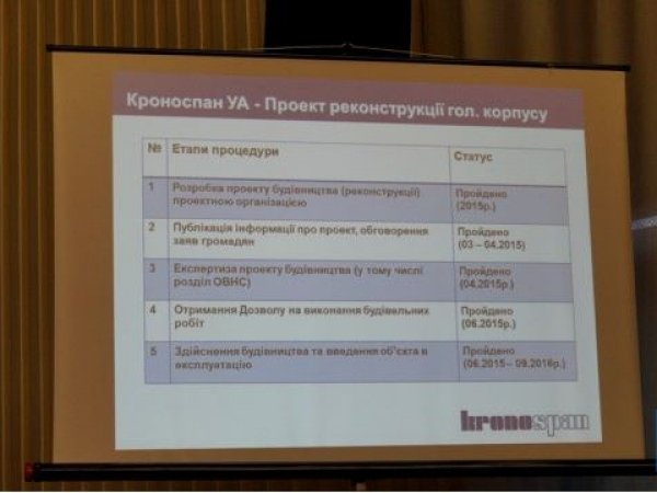 Зокрема, директор Наталя Покінська показала мешканцям презентацію, на якій була деталізована вся робота підприємства. Користуючись професійною лексикою, яка не надто зрозуміла громаді, представники заводу гарно описали “Кроноспан”.