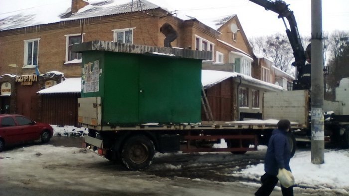 Муніципали демонтували два незаконно розташовані кіоски на вулиці Цукровій, 5 та вулиці Польовій, 3 в Луцьку.