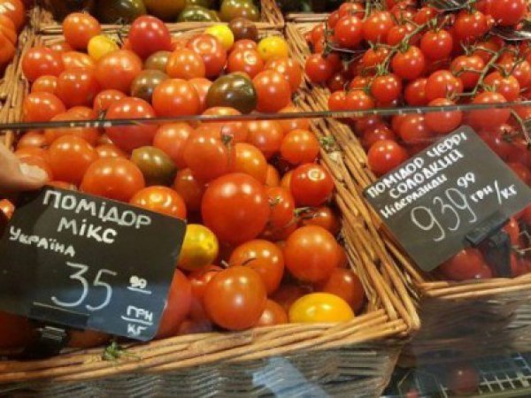 На фото видно і ціну українських помідорів – 35,99 за кілограм.