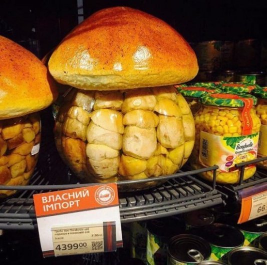 Підписники Сергія Притули скинули у коментарі до запису фото зі схожими цінами на імпортні товари: хліб за 59,99 гривень та гриби за 4399 гривень.