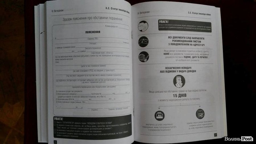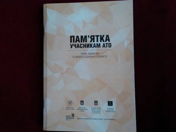 У Луцьку презентували «Пам’ятку учасникам АТО», у якій зібрані та розписані права, обов’язки та гарантії військовослужбовців, а також військовозобов’язаних та демобілізованих. Окрім того, у книзі зібрані покрокові інструкції дій для різних ситуацій із посиланням на нормативні документи.