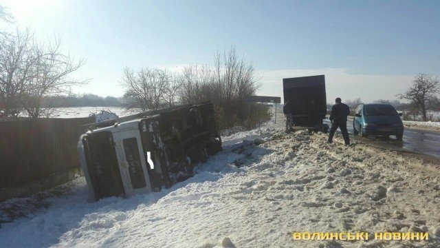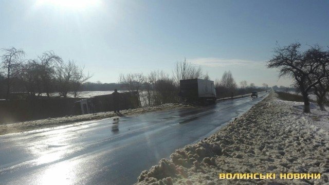 На трасі Луцьк-Львів через слизьку дорогу перекинулась вантажівка.