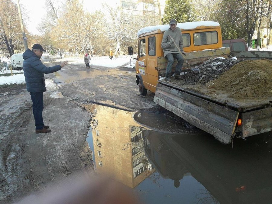 "Балицький Сергій з помічниками виручили департамент ЖКГ. Ями на дорозі між медколеджем "Монада" та ДНЗ № 37 засипали щебенем. Навесні буде проведено асфальтування", - написав депутат.